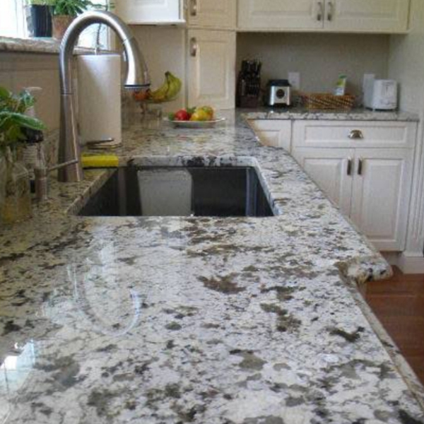 Alaska White granite is a frosty blend of pale silver and frosty whites, marketed with warm neutrals and onyx hues. Imported from Brazil, this durable natural stone is available in a range of slab sizes.